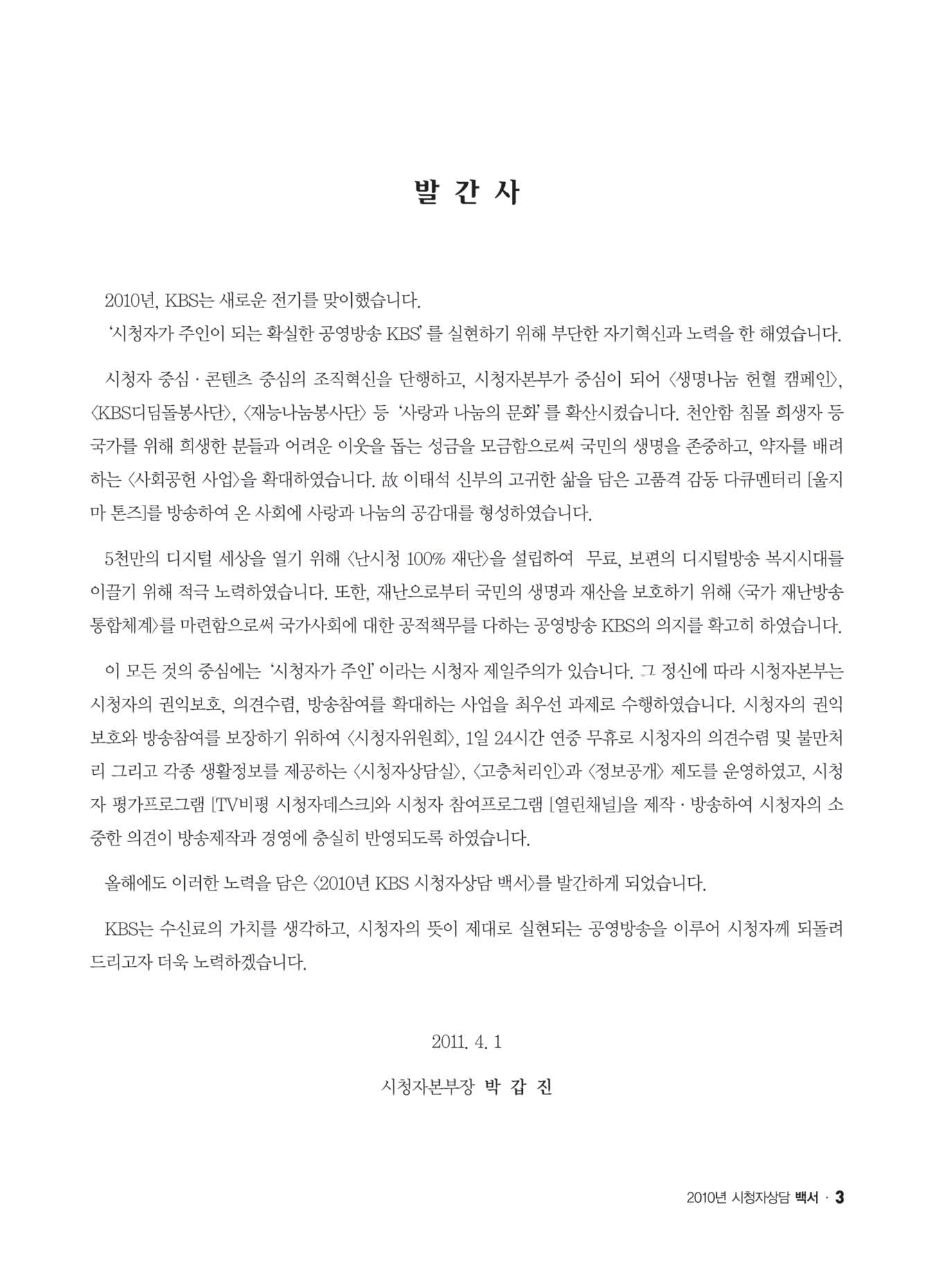<2010년 KBS 시청자상담 백서>가 발간되었습니다.